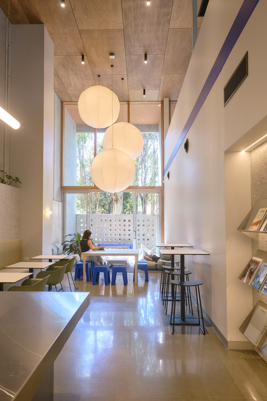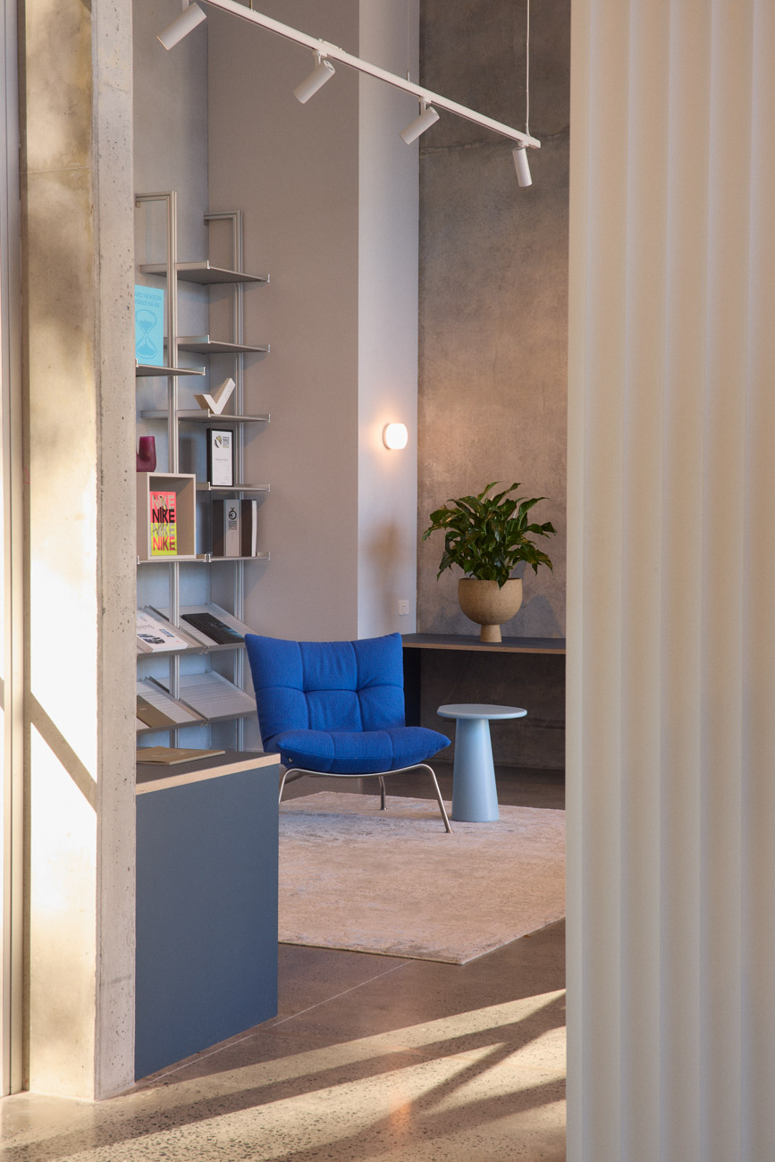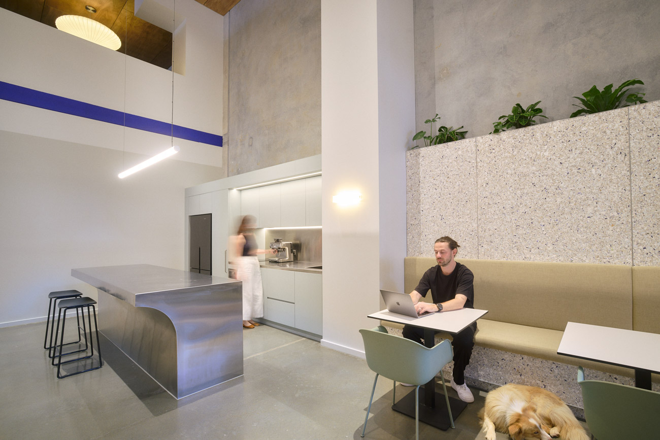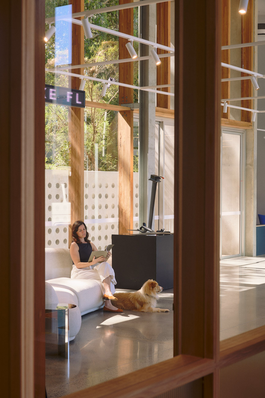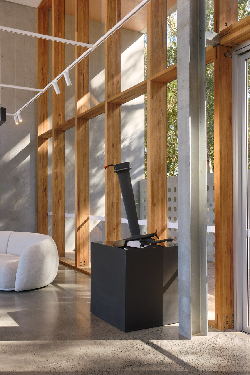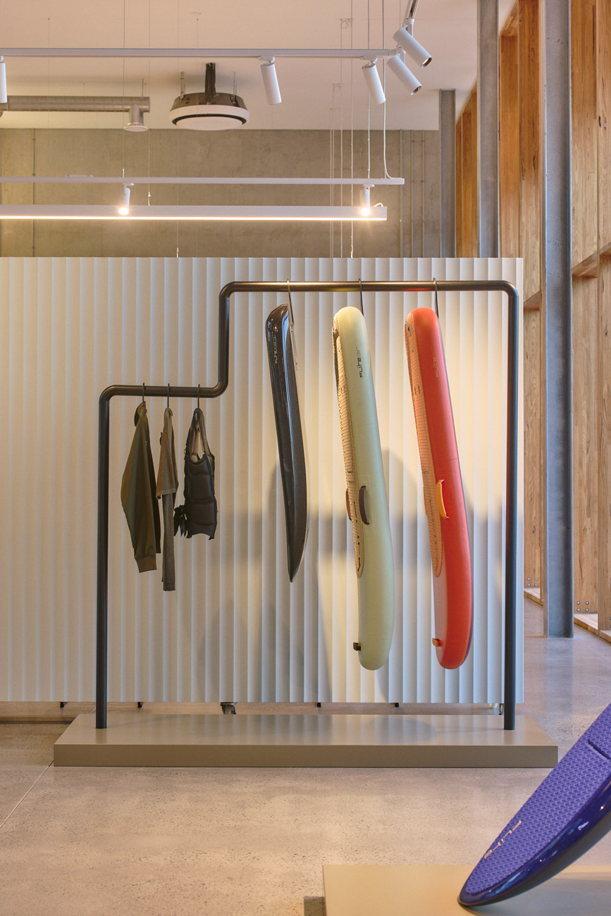 The internal fitout of Fliteboard’s spiritual HQ in the industrial estate of Byron Bay.