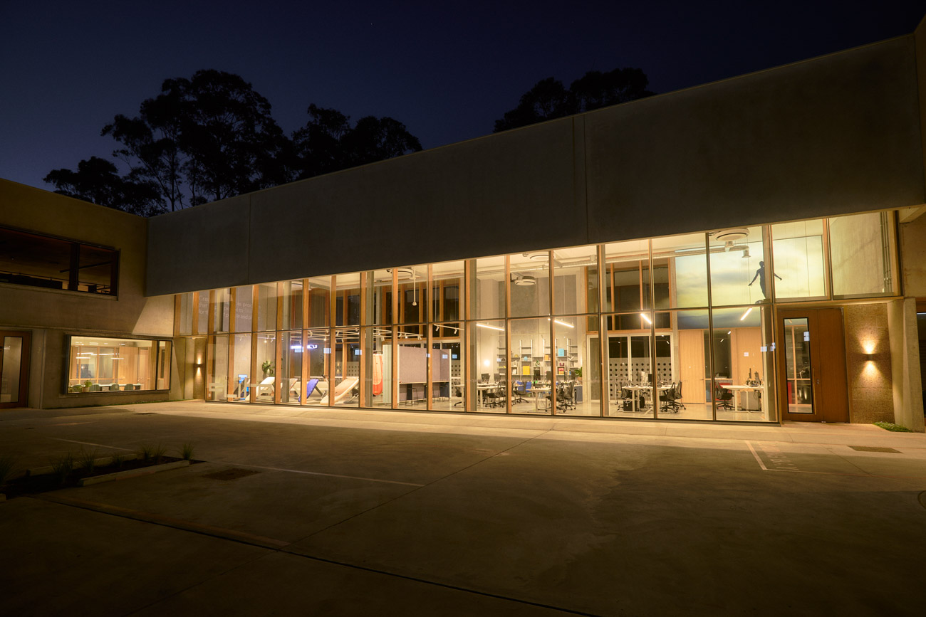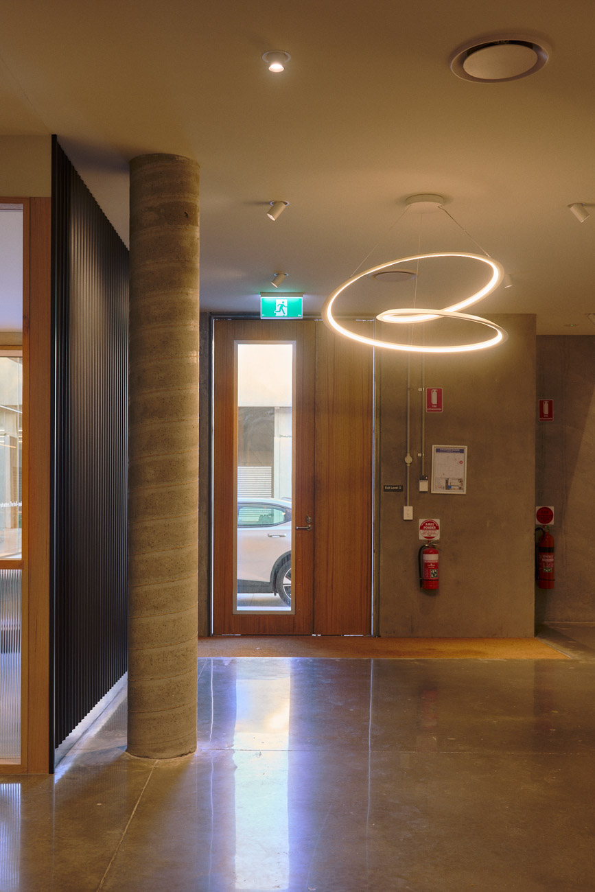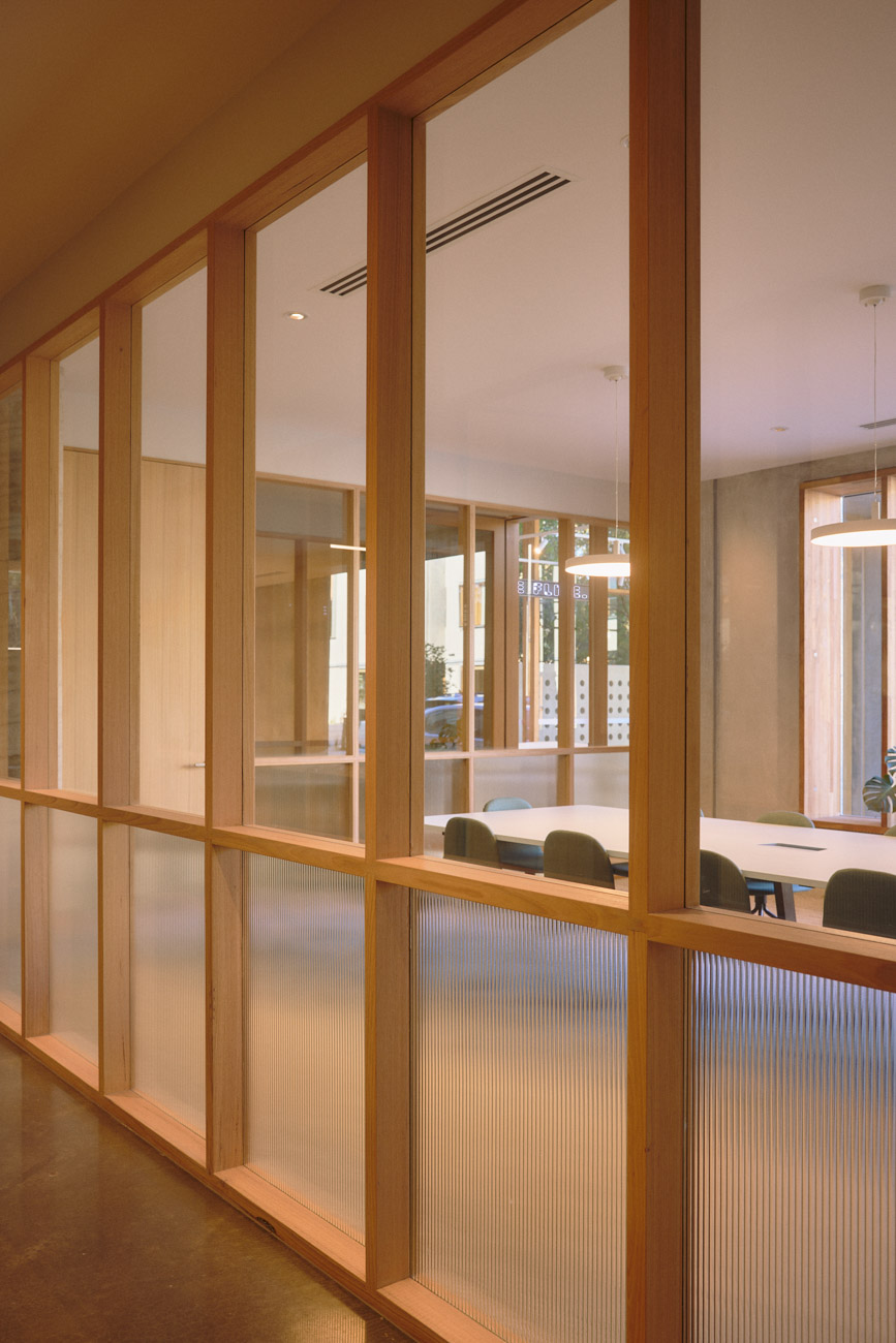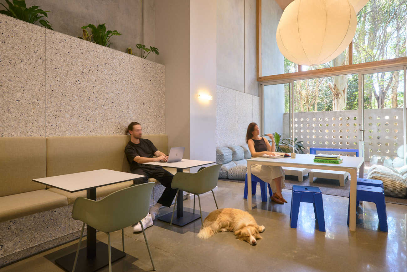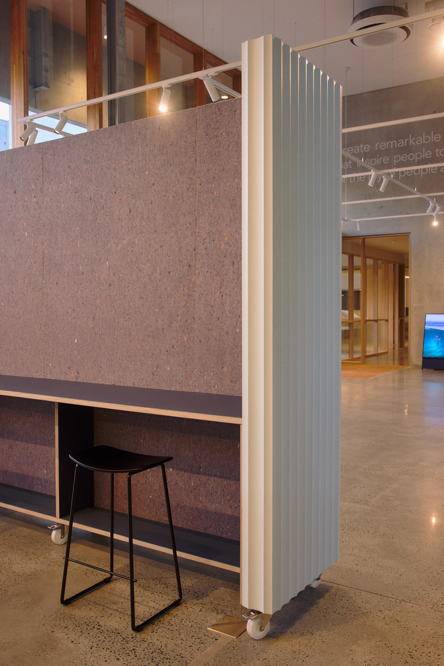 The internal fitout of Fliteboard’s spiritual HQ in the industrial estate of Byron Bay.